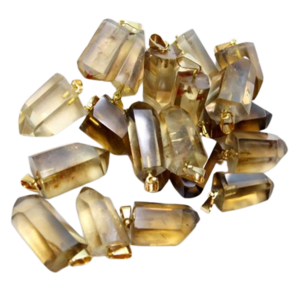 Pingente PONTA de Citrino Natural NAO Bombardeado pedra de garimpo com lapidação artesanal montado no dourado , ideal para colar e pulseiras, ja vai montado.