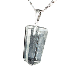 Pingente Pontinha Pedra Cristal Quartzo Presilha e Pino Prateado, Pontinha Sextavada Pedra Cristal de garimpo com lapidação artesanal montado com pino e Presilha em Prateado, ideal para colar e pulseiras, ja vai montado.