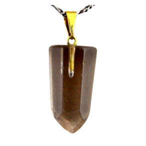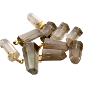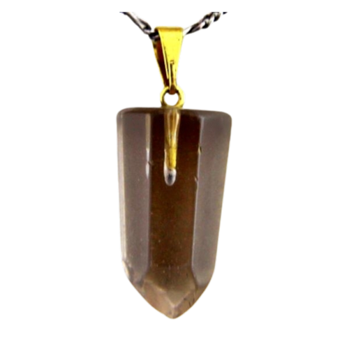 Pingente PONTA de Fumê pedra de garimpo com lapidação artesanal montado no dourado , ideal para colar e pulseiras, ja vai montado.