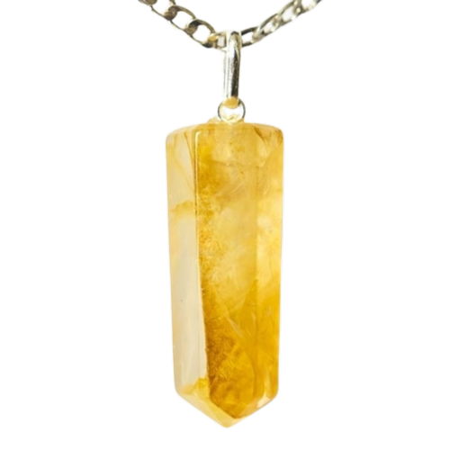 Destaque sua energia pessoal com o Colar Pontinha Pedra Hematoide Amarelo. Adquira agora e sinta-se confiante e radiante!
