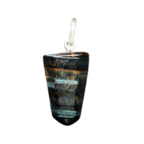 Pingente PONTA de Olho de Falcão pedra de garimpo com lapidação artesanal montado na Prata 950, ideal para colar e pulseiras, ja vai montado.
