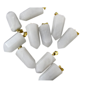Pingente PONTA de Quartzo Leitoso pedra de garimpo com lapidação artesanal montado no dourado , ideal para colar e pulseiras, ja vai montado.