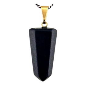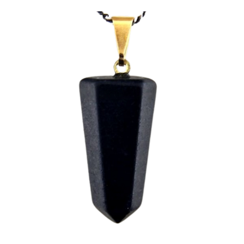 Pingente PONTA de Quartzo Preto pedra de garimpo com lapidação artesanal montado no dourado , ideal para colar e pulseiras, ja vai montado.