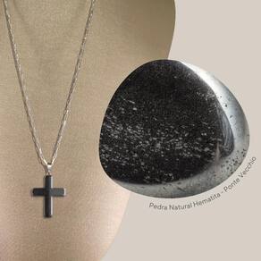 Colar Prata 925 Cadeado Hematita Cruz - Ponte Vecchio Joias