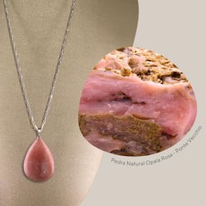 Colar Prata 925 Cadeado Opala Rosa Gota - P. Vecchio Joias