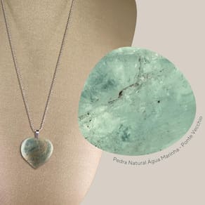 Colar Prata 925 Diamantado Água-Marinha Coração - P. Vecchio