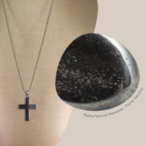 Colar Prata 925 Diamantado Hematita Cruz - P. Vecchio Joias