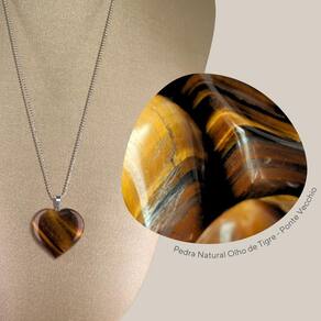 Colar Prata 925 Diamantado Olho de Tigre Coração P. Vecchio