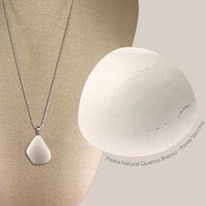 Colar Prata 925 Diamantado Quartzo Branco Polido P. Vecchio