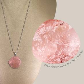 Colar Prata 925 Diamantado Quartzo Rosa Bruto Ponte Vecchio