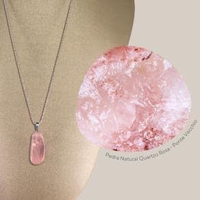 Colar Prata 925 Diamantado Quartzo Rosa Polido Ponte Vecchio