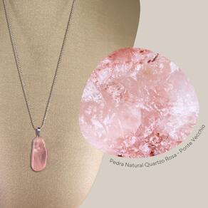 Colar Prata 925 Diamantado Quartzo Rosa Polido Ponte Vecchio