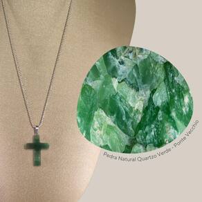 Colar Prata 925 Diamantado Quartzo Verde Cruz Ponte Vecchio