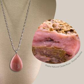 Colar Prata 925 Hélice Opala Rosa Gota - Ponte Vecchio Joias