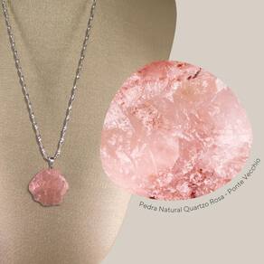 Colar Prata 925 Hélice Quartzo Rosa Bruto - P. Vecchio Joias