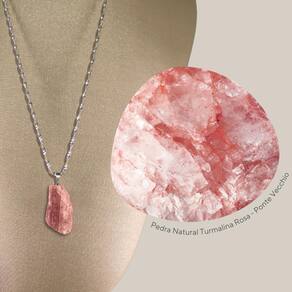 Colar Prata 925 Hélice Turmalina Rosa Bruta - Ponte Vecchio
