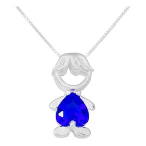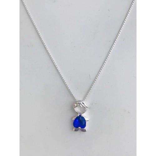 Colar De Filho Prata Corrente Pingente Menino Pedra Azul