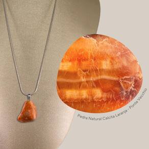 Colar Prata 925 Rabo Rato Calcita Laranja Polida - P Vecchio