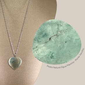Colar Prata 925 Singapura Água-Marinha Coração - P. Vecchio
