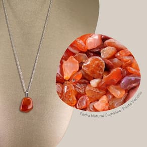 A Cornalina, com seu vibrante tom laranja-avermelhado, é valorizada por suas propriedades que aumentam a coragem e a vitalidade. Esta pedra energizante promove confiança e ação, destacando-se em qualquer joia.