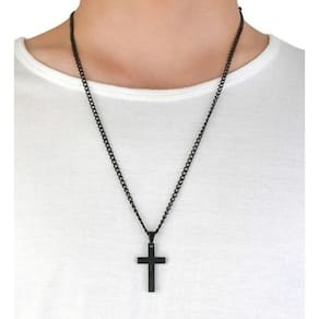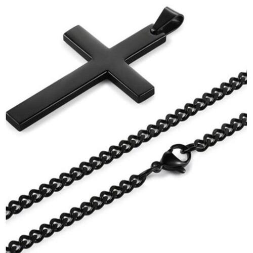 Colar preto fosco cruz corrente aço inoxidável e1102