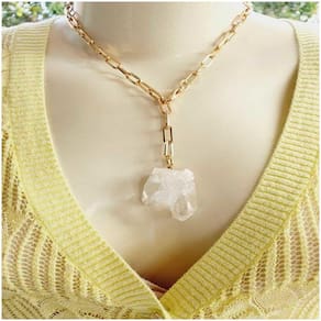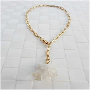 Colar com corrente em metal dourado em verniz e pingente natural de quartzo cristal