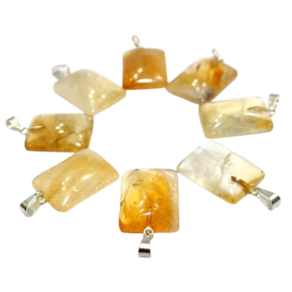 Pingente Retangular Liso Pedra Citrino Montagem Prateado com pino e perinha para cordão, mineral de garimpo pedra com lapidação e montagem manual estilo artesanal.