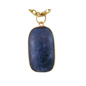 Pingente Retangular Cabochão Montagem Dourado ao redor da pedra Quartzo Azul, mineral de garimpo pedra com lapidação e montagem manual estilo artesanal.