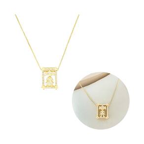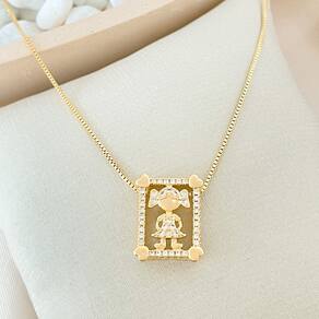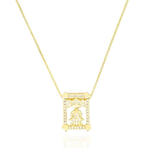 Colar Retângulo Cravejado Com Menina Banhado a Ouro