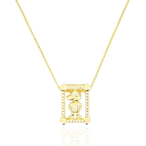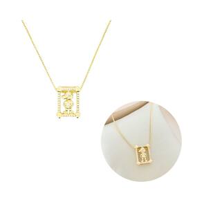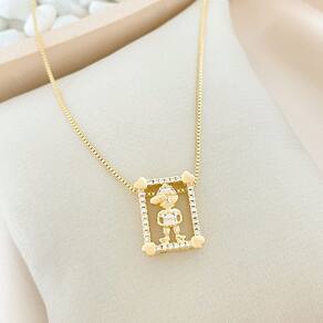 Colar Retângulo Cravejado Com Menino Banhado a Ouro