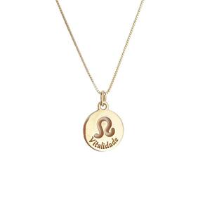 Colar zodiac signo leão - de 23 de julho a 22 de agosto; colar com pingente com medalha de signo de leão, que vem com uma pedrinha com a cor do signo descrito de strass, banhado a ouro amarelo 18k metal nobre . De um lado da medalha vem gravado por escrito o signo e a pedrinha colada com uma cola específica para joias e do outro é gravado por escrito a característica mais forte da personalidade desse signo. Cor do strass: laranja curiosidade: o laranja estimula a mente, renova a ilusão da vida e é perfeito, força intelectual e busca plena de conhecimento, proporciona bem-estar e bom humor. Palavras chaves da cor: energia, alegria, atração, felicidade e criatividade. Característica do signo: vitalidade corrente tipo veneziana com 1,00 mm de espessura x 45 cm de comprimento. Tamanho do pingente: 16,00mm de diâmetro x 2,40 de espessura. Acabamento: liso banho de 6 milesimos co camad0a de verniz peças feitas em latão metal baixo e banhadas ouro amarelo 18k metal nobre garantia de 3 meses no banho e cravação das pedras mediante a defeitos de fabricação e não mau uso pelo cliente caso aconteça um desgaste do banho, mudança de coloração, a peça será submetida a teste para averiguar se foi problema de fabricação ou mau uso. Nosso banho é denominado hipoalergênico pois não contém niquel na composição Marca: Le Rouge Joias