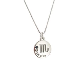 Colar zodiac signo escorpião de 23 de outubro a 21 de novembro;; Colar com pingente com medalha de signo de escorpião, que vem com uma pedrinha com a Cor do signo descrito de strass, banhado a rodio branco pu platina metal nobre . De um lado da medalha vem gravado por escrito o signo e a pedrinha colada com uma cola Específica para joias e do outro é gravado por escrito a característica mais forte da Personalidade desse signo. Cor do strass: preto Curiosidade: o preto é associado ao silêncio, inverno, escuridão, negação, infinito e força Feminina passiva e misteriosa. Palavras chaves da cor: austeridade, vida interior, constrangimento e previsão, ordem, solidão E isolamento. Característica do signo: intensidade Corrente tipo veneziana com 1,00 mm de espessura x 55 ou 60 cm de comprimento. Tamanho do pingente: 16,00mm de diâmetro x 2,40 de espessura. Acabamento: liso Banho de 6 milesimos co camad0a de verniz Peças feitas em latão metal baixo e banhadas rodio branco ou platina metal nobre Garantia de 3 meses no banho e cravação das pedras mediante a defeitos de fabricação e não Mau uso pelo cliente Caso aconteça um desgaste do banho, mudança de coloração, a peça será submetida a teste Para averiguar se foi problema de fabricação ou mau uso. Nosso banho é denominado hipoalergênico pois não contém niquel na composição Marca: Le Rouge Joias Ean: 7795992997324