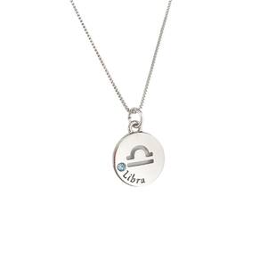 Colar Zodiac Signo Libra - de 23 de setembro a 22 de outubro;; Colar com pingente com medalha de signo de Libra, que vem com uma pedrinha com a cor do Signo descrito de strass, banhado a rodio branco ou platina metal nobre . De um lado da medalha vem gravado por escrito o signo e a pedrinha colada com uma cola Específica para joias e do outro é gravado por escrito a característica mais forte da Personalidade desse signo. Cor do Strass: Azul Claro Curiosidade: O Azul nos faz ficar calmos e protegidos de toda agitação do dia e também Combate a insônia, controla a mente e traz clareza e criatividade. Palavras chaves da cor: generosidade, saúde, cura, frescor, compreensão e tranquilidade. Característica do signo: Harmonia Corrente tipo veneziana com 1,00 mm de espessura x 55 ou 60 cm de comprimento. Tamanho do pingente: 16,00mm de diâmetro x 2,40 de espessura. Acabamento: Liso Banho de 6 milesimos co camad0a de verniz Peças feitas em latão metal baixo e banhadas rodio branco ou platina metal nobre Garantia de 3 meses no banho e cravação das pedras mediante a defeitos de fabricação e não Mau uso pelo cliente Caso aconteça um desgaste do banho, mudança de coloração, a peça será submetida a teste Para averiguar se foi problema de fabricação ou mau uso. Marca: Le Rouge Joias Ean: 7795992997256