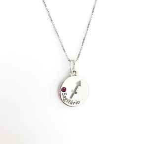 Colar Zodiac Signo Sagitário - de 22 de novembro a 21 de dezembro; Colar com pingente com medalha de signo de Sagitário, que vem com uma pedrinha com a cor Do signo descrito de strass, banhado a platina metal nobre . De um lado da medalha vem gravado por escrito o signo e a pedrinha colada com uma cola Específica para joias e do outro é gravado por escrito a característica mais forte da Personalidade desse signo. Cor do Strass: Roxo Curiosidade: O roxo equilibra a mente e ajuda transformar a obsessões e medos, associada a Proteção psíquica, produz um efeito libertador e transmutação. Palavras chaves da cor: sabedoria, criatividade, independência, dignidade, serenidade, Mudança e transgressão. Característica do signo: Otimismo Corrente tipo veneziana com 1,00 mm de espessura x 55 ou 60cm cm de comprimento. Tamanho do pingente: 16,00mm de diâmetro x 2,40 de espessura. Acabamento: Liso Banho de 6 milesimos co camad0a de verniz Marca: Le Rouge Joias Ean: 7795992997560