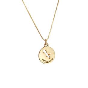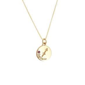 Colar zodiac signo sagitário - de 22 de novembro a 21 de dezembro; Colar com pingente com medalha de signo de sagitátio, que vem com uma pedrinha com a cor Do signo descrito de strass, banhado a ouro amarelo 18k metal nobre . De um lado da medalha vem gravado por escrito o signo e a pedrinha colada com uma cola Específica para joias e do outro é gravado por escrito a característica mais forte da Personalidade desse signo. Cor do strass: roxo Curiosidade: o roxo equilibra a mente e ajuda transformar a obsessões e medos, associada a Proteção psíquica, produz um efeito libertador e transmutação. Palavras chaves da cor: sabedoria, criatividade, independência, dignidade, serenidade, Mudança e transgressão. Característica do signo: otimismo Corrente tipo veneziana com 1,00 mm de espessura x 65 cm de comprimento. Tamanho do pingente: 16,00mm de diâmetro x 2,40 de espessura. Acabamento: liso Peças feitas em latão metal baixo e banhadas ouro amarelo 18k metal nobre Garantia de 3 meses no banho e cravação das pedras mediante a defeitos de fabricação e não Mau uso pelo cliente Caso aconteça um desgaste do banho, mudança de coloração, a peça será submetida a teste Para averiguar se foi problema de fabricação ou mau uso. Nosso banho é denominado hipoalergênico pois não contém niquel na composição Marca: Le Rouge Joias