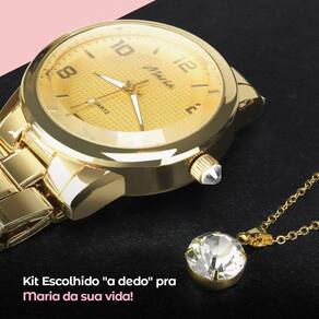 O Relógio Feminino Dourado Orizom com pulseira e colar banhado a ouro é mais do que um acessório, é uma declaração de estilo e bom gosto. Adquira agora esta peça exclusiva que reflete a sua elegância única.