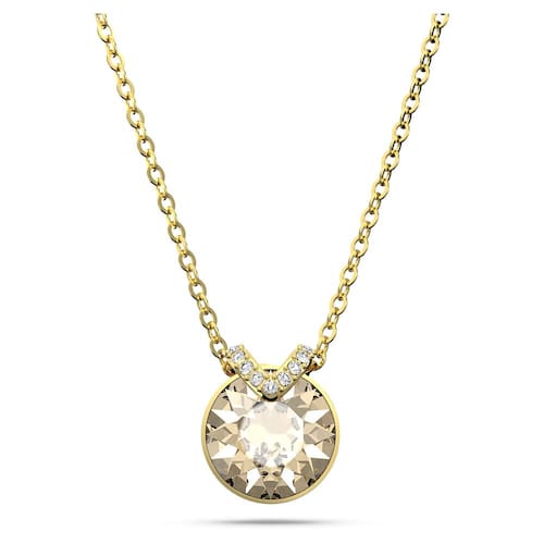 Swarovski Coleção de colares de cristal Bella, Cristal Cristal Banhado a ouro, Cristal - Medidas: comprimento mínimo 36 cm, comprimento máximo 40 cm - Elegante e atraente: Feito com simplicidade em mente, este colar com pingente apresenta um cativante conjunto de cristal central dourado em tom dourado, com pavé de cristal transparente delicado para um brilho extra - Design cativante: este pingente Bella exala elegância sutil toda vez que você o coloca, com uma pedra central redonda e pequenos cristais para um toque de glamour, pendurado em uma corrente chique com acabamento dourado - Beleza versátil: fácil de estilizar para uma variedade de looks diurnos e noturnos, combine perfeitamente este colar com qualquer roupa, seja casual ou formal, ou surpreenda alguém especial com um presente atencioso - Projetado para durar: as joias Swarovski mantêm seu brilho quando práticas simples de cuidado são observadas; remova antes de entrar em contato com água, loções ou perfumes e polir com um pano sem fiapos - Itens entregues: (1) Colar com pingente Swarovski Bella V com corte redondo, pedra central dourada e detalhes delicados de pavé transparente em corrente com acabamento dourado, completo com caixa de colar Swarovski