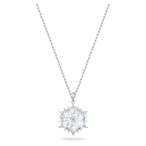 Swarovski Colar mágico e pulseira coleção de joias de cristal, Cristal, Zircônia cúbica - Comprimento do colar: 36 cm; Tamanho do motivo: 3/8 x 5/20.3 cm; Tipo de fecho: Lagosta - Beleza natural: inspirado no mistério e na elegância da temporada de inverno, este colar adiciona um toque irresistível de brilho Swarovski a qualquer visual, apresentando um motivo de floco de neve em uma corrente delicada - A arte encontra a imaginação: um cristal transparente multifacetado brilhante ocupa o centro do palco neste encantador colar de pingente com tema de inverno com uma configuração brilhante com acabamento de ródio, para um estilo sutil - Design mágico: abrace a magia da temporada de férias e estilize este pingente como uma peça solo brilhante ou coloque-o com outro colar para marcar o glamour para celebrações noturnas - Projetado para durar: as joias Swarovski mantêm seu brilho quando práticas simples de cuidado são observadas; remova antes de entrar em contato com água, loções ou perfumes e polir com um pano sem fiapos - Swarovski Colar com pingente mágico com motivo de floco de neve com cristal transparente em acabamento de ródio; (1) caixa de colar Swarovski