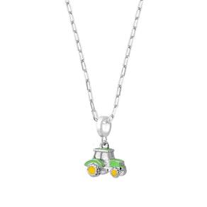 Este colar da Coleção VL Kids, foi elaborado na corrente de elos estilo cartier, com pingente de trator, em 4 opções de cores e revestimento hipoalergênico em metal prateado. Possui 3 regulagens em sua corrente, permitindo liberdade de movimento e tornando a opção perfeita para o dia-a-dia da criança.