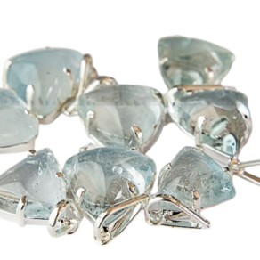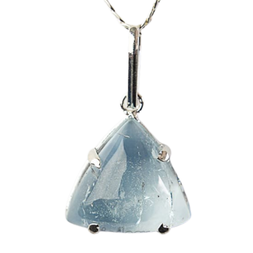 Pingente Trillion Topazio Azul Pedra Garra Prateado, Lapidação Trillion com acabamento Liso montagem na garra prateado com perinha para passar o cordão Pedra Genuina com origem garimpo lapidação e montagem manual.