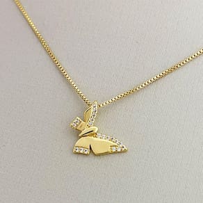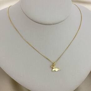 Colar Veneziana com Pingente Borboleta com Pedras de Zircônia Banhado a Ouro