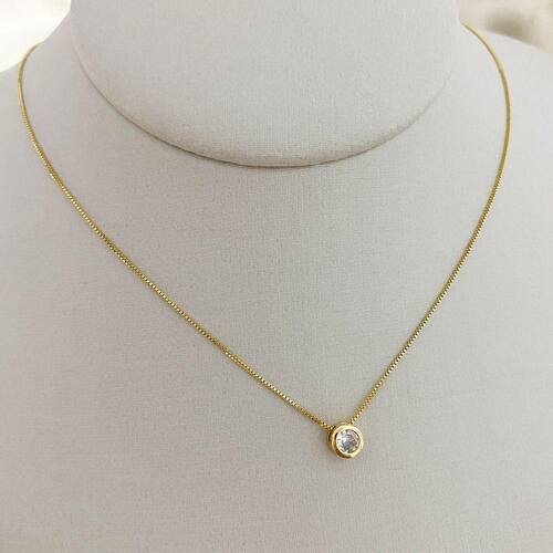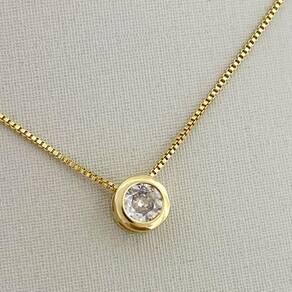 Colar Veneziana Pingente Ponto de Luz em Zircônia Banhado a Ouro