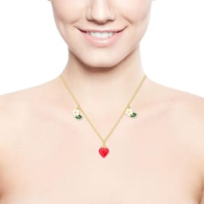 A VL accessoires pensou em cada detalhe para trazer à você a Coleção VL Agro! Como símbolo das frutas do Agro brasileiro, o morango veio acompanhado de suas flores neste lindo colar com detalhes realistas e Revestimento Ouro. Sua corrente de elos portugueses é versátil e possui 3 opções de regulagem.
