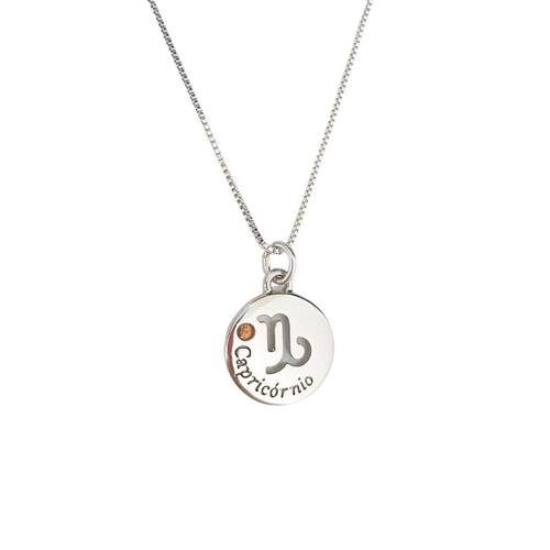 Este lindo colar possui um pingente com medalha do signo de Capricórnio, que vem com uma pedrinha de strass marrom, representando a cor do signo. O pingente é banhado a rodio branco ou platina, um metal nobre que garante durabilidade e brilho intenso.
