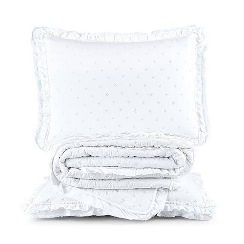 Colcha Alice 200 Fios Queen 03 Peças 100% Poliéster - Branco Colcha Alice 200 Fios Queen 03 Peças 100% Poliéster Pensada em cada detalhe com muito carinho, a Colcha Alice chega para transformar seu quarto em um refúgio de delicadeza e conforto, com um toque romântico e atemporal. Por que a Colcha Alice é tão encantadora?