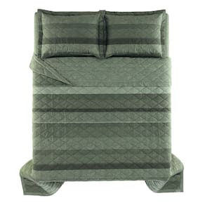 Especificações do produto Atributos: Jogo de colcha dupla face com tratamento termobond e cantos quadrados; Porta-travesseiro com 3 abas de 5 cm Descrição Visual: Frente com padronagem de linhas horizontais em tons de verde e verso com fundo verde e textura Quantidade de Fios: 200 Fios Quantidade de Peças: 3 Peças Composição: 100% Algodão Tamanho: Casal Itens Inclusos: 1 Colcha; 2 Porta-travesseiros Medida Colcha: 2,20m x 2,60m; Porta-travesseiro: 50cm x 70cm Acabamento: Estampado