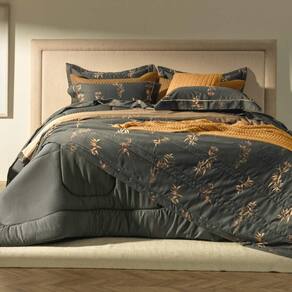 Confeccionada em 100% algodão egípcio de fibra longa e 300 fios com enchimento thermobonder com 60g/m. O jogo de colcha Ávila inspira sofisticação e autenticidade. A estampa da colcha e do porta-travesseiro dupla face ganham destaque pela predominância do tom de cinza profundo em contraste com flores e folhas em tons quentes. O verso apresenta uma padronagem de triângulos tom sobre tom, trazendo um ar contemporâneo para a composição. O tratamento termobond evita o deslocamento do enchimento, proporcionando mais conforto e durabilidade. Altamente respirável, regula a temperatura corporal ao absorver a umidade, garantindo bem-estar durante o uso. Sua característica hipoalergênica cuida das peles mais sensíveis. Com o toque sedoso do tecido em algodão egípcio, Ávila é a cama que se destaca no quarto. Foto meramente ilustrativa.