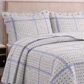 A Colcha Evolution Casal 3 Peças 220x240cm Geométrica da Camesa é perfeita para quem busca elegância, praticidade e um toque moderno no quarto. Com estampa geométrica listrada e com bolinhas em tons de branco e azul, ela proporciona um visual sofisticado e versátil, combinando facilmente com diferentes estilos de decoração.