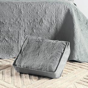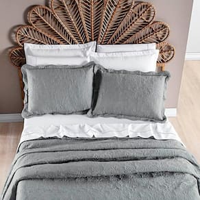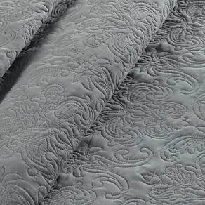 Colcha Casal Padrão Angele Dupla Face 200 Fios Bordado 3 Peças - Cinza Lunar