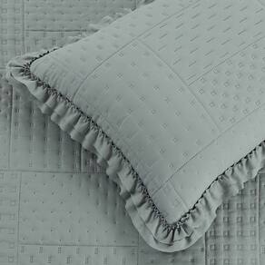 Colcha Casal Percal 300 Fios Babado Malvinni 3 Peças - Cinza